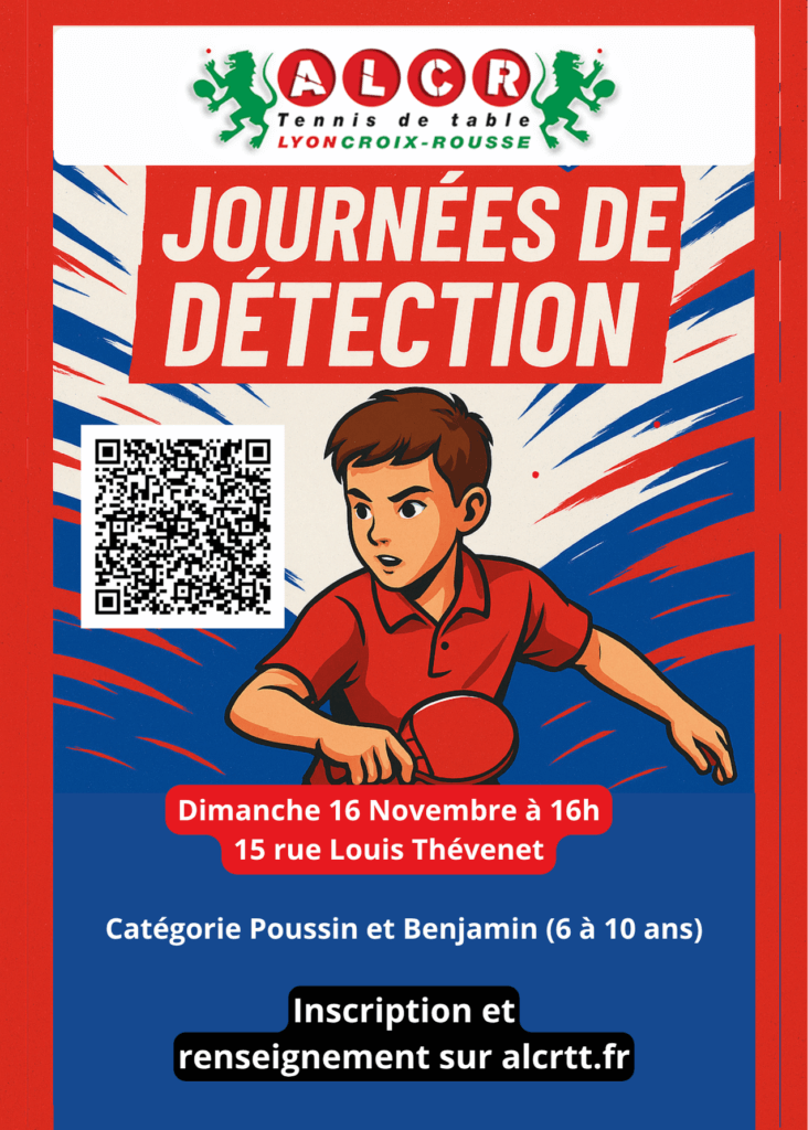 Le club organise une journée de détection le dimanche 16 novembre à 16h, au 15 rue Louis Thévenet – Lyon 4e.